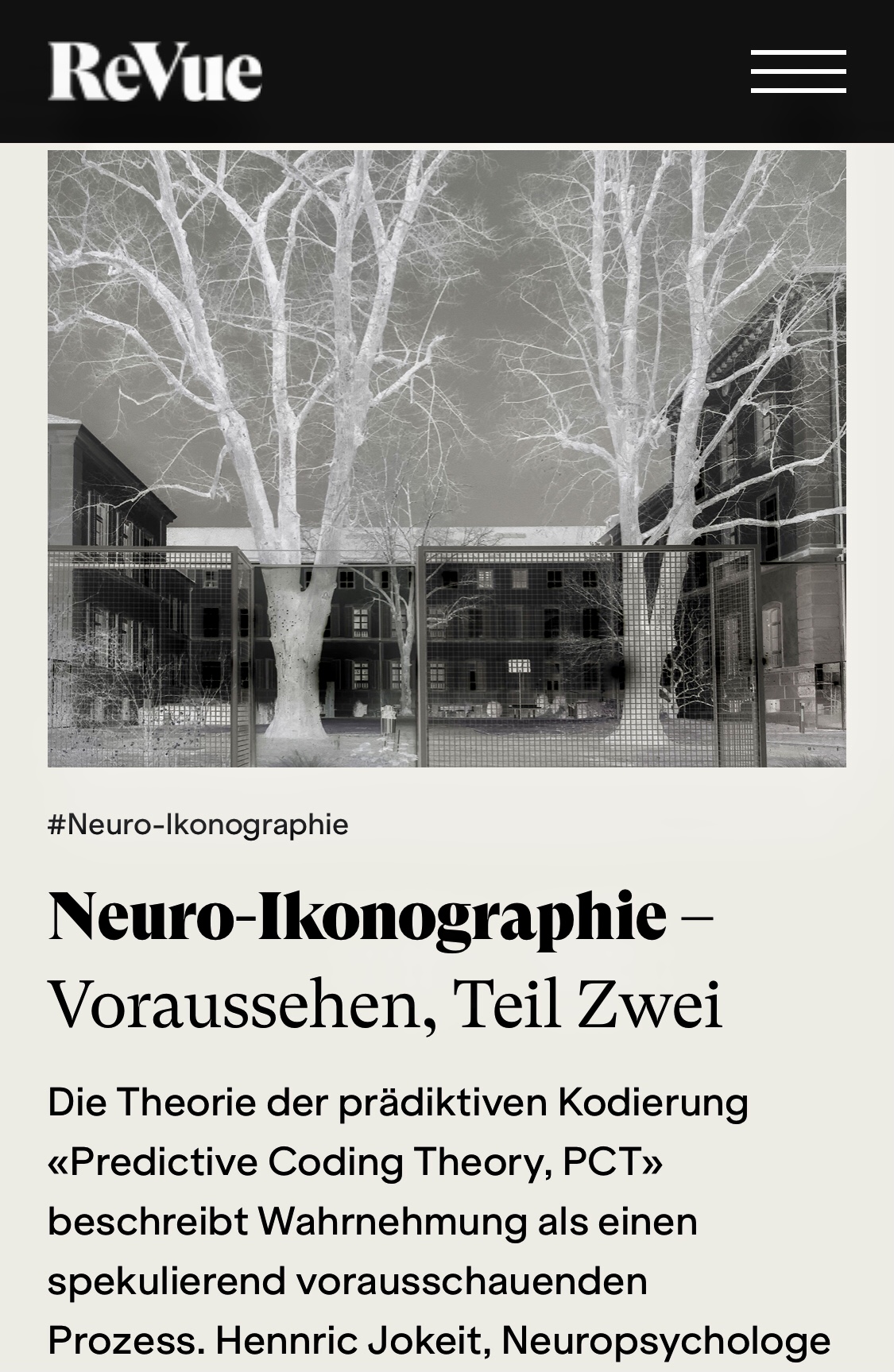 ReVue Magazin für Fotografie und Wahrnehmung, 2021 HEINRICH JAKOB8. Juli 202116. Februar 2024Allgemein Beitrags-Navigation VorherigerWeiter Teil I Wie verarbeitet unser Gehirn das, was wir sehen? Wie steht es um unser visuelles Gedächtnis und wie manipulierbar ist unsere Wahrnehmung? Eine Einführung in die Grundlagen des Sehens Teil II Teilen mit: Klicke, um auf X zu teilen (Wird in neuem Fenster geöffnet) X Klick, um auf Facebook zu teilen (Wird in neuem Fenster geöffnet) Facebook Klicken, um auf WhatsApp zu teilen (Wird in neuem Fenster geöffnet) WhatsApp Klick, um auf Pinterest zu teilen (Wird in neuem Fenster geöffnet) Pinterest Klick, um auf LinkedIn zu teilen (Wird in neuem Fenster geöffnet) LinkedIn Klick, um auf Tumblr zu teilen (Wird in neuem Fenster geöffnet) Tumblr Klicken, um einem Freund einen Link per E-Mail zu senden (Wird in neuem Fenster geöffnet) E-Mail Klick, um auf Reddit zu teilen (Wird in neuem Fenster geöffnet) Reddit Gefällt mir Wird geladen …